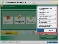 Сведения об экранах, которые могут быть заданы для отображения после запуска аппарата, см. в разделе "Экран по умолчанию после запуска/восстановления". Параметры, которые может задать пользователь, могут отличаться в зависимости от его привилегий. Дополнительные сведения о регистрации и изменении часто используемых параметров см. в следующих разделах: Регистрация/правка/удаление кнопок часто используемых параметров для функции Копирование Регистрация/правка/удаление кнопок часто используемых параметров для функции Сканировать и отправить Регистрация и правка часто используемых параметров для функции Доступ к сохраненным файлам Регистрация и правка часто используемых параметров для функции Сканировать и сохранить Дополнительные сведения о регистрации клавиш быстрого вызова для разделов Параметры и Часто используемые параметры см. в следующих разделах: Регистрация клавиш быстрого доступа для функции Копирование Регистрация клавиш быстрого доступа для функции Сканировать и отправить |
