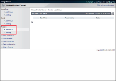 нажмите кнопки [Job Log] → [Store in CSV Format] → загрузите файл.