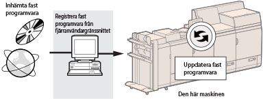 Du kan uppdatera maskinens fasta programvara till den senaste versionen med hjälp av "Registrera/uppdatera programvara" från fjärrgränssnittet.