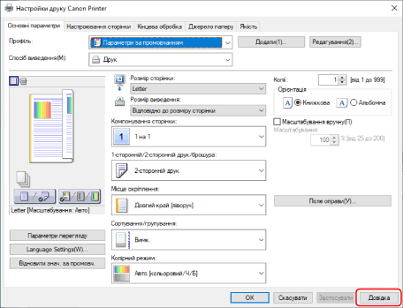 Щоб відобразити довідку, натисніть [Довідка] на екрані драйвера.