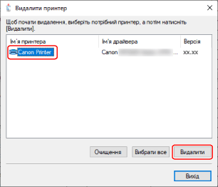 [Очищення]: натисніть, щоб одночасно видалити всі файли та дані реєстру, що стосуються всіх драйверів у списку, а не лише вибраного драйвера. Натисніть [Видалити], щоб видалити драйвер у звичайному режимі.