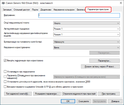 На аркуші [Параметри пристрою] натисніть [OK] або [Застосувати].