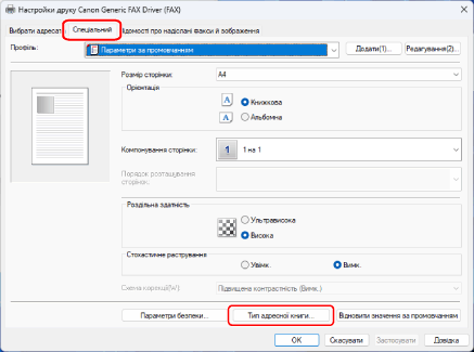 Відкрийте аркуш [Спеціальний] → натисніть [Тип адресної книги].