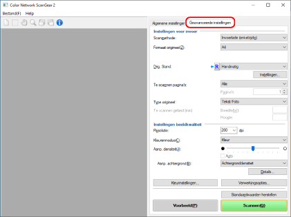 Het scherm scaninstellingen van Color Network ScanGear 2 verschijnt.