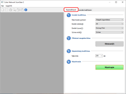 FONTOSNe végezzen műveletet a Color Network ScanGear 2 képernyőn, amíg a [Képolvasás] gombra kattintás után meg nem jelenik a beolvasási párbeszédpanel.