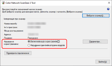 У цьому разі заздалегідь збережіть дані автентифікації в діалоговому вікні [Параметри автентифікації користувачів] у засобі Color Network ScanGear 2 Tool, щоб скористатися функцією керування користувачами.