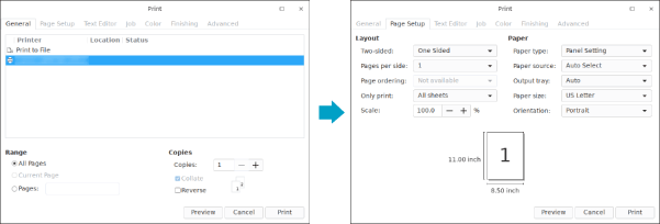 Installing this driver enables you to print with built-in device functions from the GUI (Graphical User Interface) settings screen and command line.