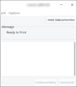 [Hide Statusmonitor] | The Status Monitor will be set to a non-displayed status by clicking this button and will appear only when an error occurs while printing. |