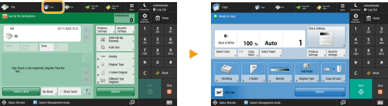 You can create a shortcut button for the functions on the <Home> screen. Use this button to access a different function without returning to the <Home> screen. To create a shortcut, log in with administrator privileges.
