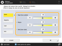 Vous pouvez exécuter des réglages précis de la puissance et densité de l'équilibre des couleurs.