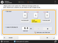 3 | Sélectionnez l’état actuel de la position du pli et réglez la largeur de décalage. ![]() Sélectionnez l’état actuel de la position de l’agrafe et configurez la largeur de décalage sur la page de test. |