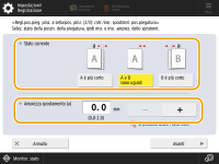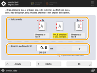Selezionare lo stato corrente della posizione piegatura e impostare la larghezza dello spostamento.