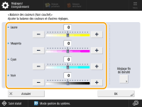 Vous pouvez exécuter des réglages précis de la puissance et densité de l'équilibre des couleurs.