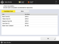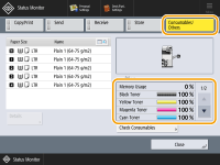 Você pode verificar a quantidade restante de consumíveis a partir da UI Remota. Verificando o status da máquina