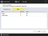 Pressione  (Status Monitor/Cancel)  <Consumables/Others>  <Check Consumables>.