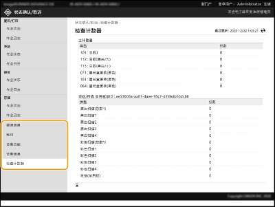 可以检查有关本机的信息,例如错误信息、剩余纸张量和墨粉剩余量、已安装的可选设备的相关信息以及到目前为止已打印的总页数。
