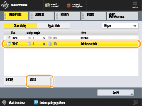 (Stop) na ovládacím panelu, když je zobrazena obrazovka Základní funkce pro kopírování, bude tisková úloha přerušena a objeví se zpráva <<Zastavit>Vyberte kopírovací úlohu, kterou chcete zrušit.> a také seznam kopírovacích úloh. Z tohoto seznamu můžete vybrat kopírovací úlohu a zrušit ji stisknutím <Zrušit>.Pokud se přihlásíte pomocí osobní autentizační správy a pokud se odhlásíte po stisknutí tlačítka