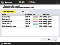 I když je v okně <Zbývající dny> zobrazeno upozornění <Potřebuje výměnu>, neprovádějte výměnu, dokud se v oblasti zobrazení stavu nezobrazí zpráva vyzývající k výměně spotřebního materiálu (ve spodní části displeje dotekového panelu).