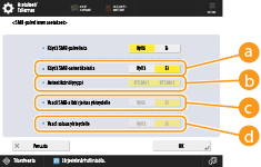 Kun <Vaadi salaus yhteydelle> -asetuksena on <Kyllä>, laite voi yhdistää vain SMB-palvelimiin, jotka tukevat SMB v3.0 -salattua tiedonsiirtoa. Kun <1,0>- ja <2,0>-asetuksina on <Kyllä> kohdassa <Määritä SMB asiakasversio>, mutta <3,0>-asetuksena ei ole <Kyllä>, laite ei voi yhdistää SMB-palvelimiin, jotka eivät tue SMB v3.0 -salattua tiedonsiirtoa.