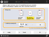 Wyreguluj pozycję składania przy zszywaniu zeszytowym i pozycję zszywania tak, aby znajdowały się na środku papieru. Wydrukuj stronę testową, sprawdź bieżący stan pozycji składania i szerokości przesunięcia na stronie testowej, a następnie dokonaj regulacji.