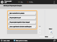 Para facilitar a utilização do ecrã <Início> e do ecrã das funções básicas de cada função, pode personalizar o ecrã reorganizando os botões ou criando botões de atalho. Além disso, pode aumentar a eficiência do seu trabalho registando as programações já especificadas para as funções utilizadas com frequência em <Pessoal>/<Partilhado>, ou utilizar as programações pessoais para personalizar o ambiente de funcionamento de acordo com as suas preferências.