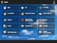 A ordem, tamanho e número dos botões apresentados no ecrã <Início> podem ser alterados, assim como a imagem de fundo. <Progs gestão Início> permite configurar as programações de apresentação da linha cronológica e mostrar/ocultar os botões de função.