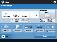 Apresenta os botões de <Opções> utilizados mais frequentemente. O estado da programação é apresentado nos botões. É possível alterar os botões atualmente apresentados para outros botões de configuração de funções, utilizando o ícone em