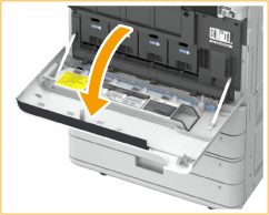 Segure nas extremidades esquerda e direita da tampa da frente da unidade principal ao abri-la.
