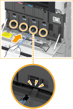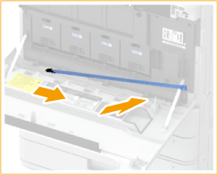 Se aparecerem riscas brancas ou se ocorrerem outros defeitos de impressão após a limpeza do vidro de exposição, do alimentador e da unidade principal, é possível que o vidro antipoeira esteja sujo. Nesse caso, siga o procedimento abaixo para limpar o vidro antipoeira.