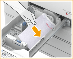 Colocar envelopes na gaveta para papel