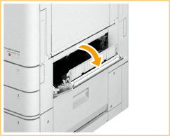 Abra a tampa superior direita e a tampa inferior direita da gaveta para papel.