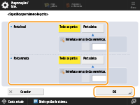 Carregue em <Especificar por número de porta> para utilizar números de portas quando especificar as portas às quais o IPSec se aplica. Selecione <Todas as portas> para aplicar o IPSec a todos os números de porta. Para aplicar o IPSec a um determinado número de porta, carregue em <Porta única> e introduza o número da porta. Depois de especificar as portas, carregue em <OK>. Especifique a porta desta máquina em <Porta local> e especifique a porta do par de comunicação em <Porta remota>.