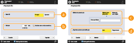 Selecione <Auto> ou <Progs manuais> para programar como especificar o algoritmo de autenticação e codificação para o IKE fase 1. Se selecionar <Auto>, é programado automaticamente um algoritmo que pode ser utilizado tanto por esta máquina como pelo par de comunicação. Se pretender especificar um determinado algoritmo, selecione <Progs manuais> e configure as programações abaixo.