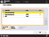 Se a opção <Formatar método codificação p/FIPS 140-2> estiver programada como <Ligado>, ocorrerá um erro ao tentar especificar um certificado para TLS que utilize um algoritmo não reconhecido pelas FIPS (inferior a RSA2048bit).