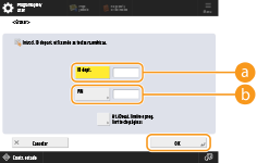 Introduza um número de 7 dígitos ou menos para o PIN e carregue em <Confirmar>. Para confirmar, introduza o PIN novamente e carregue em <OK>. Se não pretender programar um PIN, deixe este item em branco.