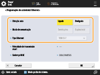 Selecione <10BASE-T>, <100BASE-TX> ou <1000BASE-T> em <Tipo Ethernet>.