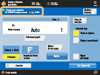 Apresenta o estado das programações como o formato do papel onde pretende imprimir e o número de impressões. Não se esqueça de confirmar as programações para uma impressão correta. Para alterar as programações, carregue no botão sob a secção de apresentação. Para alterar o número de impressões, introduza o número pretendido utilizando as teclas numéricas.