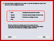 Reinicie a máquina. Se a mensagem continuar a aparecer depois de reiniciar a máquina, anote a mensagem e contacte o seu revendedor ou representante do serviço.