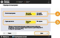 Выберите <Лицевая сторона> или <Обр. стор.> и введите номер с помощью кнопок <-> и <+>.