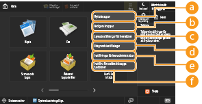 <Begränsa funktionsdisplay>: Välj vilka funktioner eller MEAP-program som ska döljas på <Hem>-skärmen.