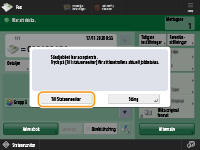 Om flera ark matasScanningen stoppas och ett meddelande visas på skärmbilden. Följ instruktionerna för att rensa pappersstoppet. När du har rensat stoppet, visas skärmen för att återuppta jobbet. Om maskinen felaktig detekterar matning av flera ark samtidigt, tryck på <Detektera ej flerarksmatning> för att återuppta scanning.