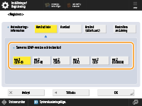 När du anger IP-adress, kontrollera om den användbara DNS-servern bara har stöd för sökning framåt. Om DNS-servern bara har stöd för sökning framåt, tryck på <Använd inte> eller <Använd> i <Autentiseringsinformation> i steg 4. När du väljer <Använd (säkerh.aut.)>, måste du kontrollera att DNS-servern har stöd för sökning bakåt.