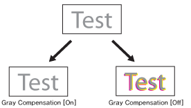 블랙과 그레이 데이터가 전체 네 개(CMYK) 토너를 사용하여 인쇄됩니다. [On]을 선택했을 때보다 어두운 영역의 계조 표현이 향상됩니다.