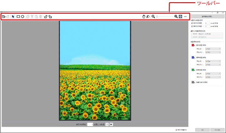 用紙に対する画像の出力位置のずれ幅について、縦方向と横方向のそれぞれに許容値を設定できます。この設定は、すべてのページに適用されます。