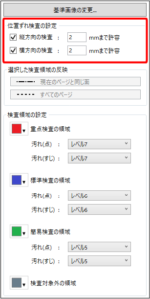 位置ずれ検査の対象にチェックマークを付けて、許容値を入力する