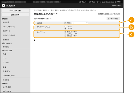 デバイス設定(転送設定、アドレス帳、送信のよく使う設定)をエクスポートする場合