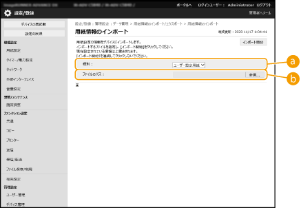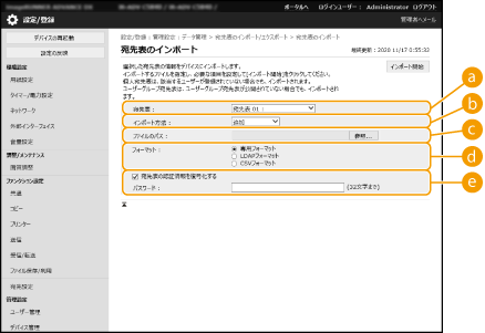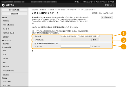 デバイス設定(転送設定、アドレス帳、送信のよく使う設定)をインポートする場合