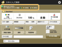 ホームの<スキャンして保存>を押したあと、<ボックス>、<アドバンスドボックス>、<ネットワーク>、<メモリーメディア>のいずれかを押して原稿を読み込もうとすると、次の設定画面が表示されます。
