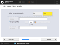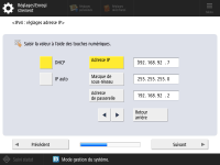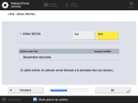 Vous pouvez ignorer les réglages nécessitant les privilèges d'administrateur et passer à l'étape suivante en appuyant sur <Ignorer>. Dans ce cas, passez à l'étape 11.