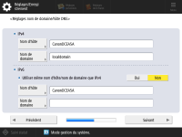 Spécifiez l'adresse du serveur DNS, le nom d'hôte et le nom de domaine DNS.